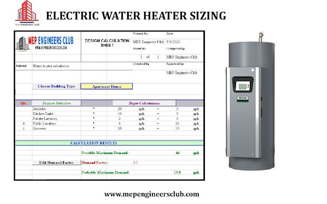 Download this free excel sheet for the calculation of electric water heater capacity i…